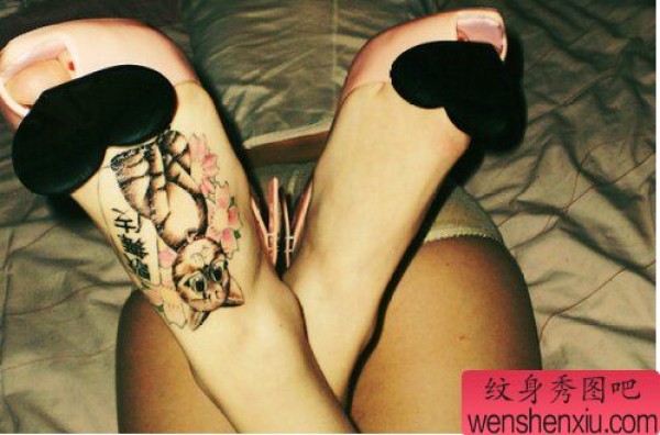 可爱萌老虎脚踝纹身_脚部纹身图案大全_纹身图吧