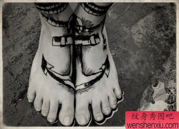 创意脚背船锚文身作品