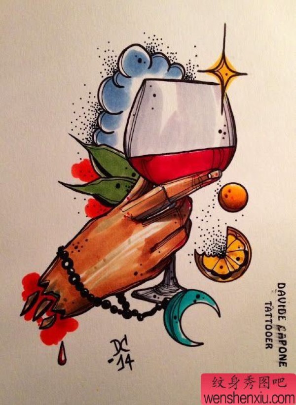 酒杯文身作品