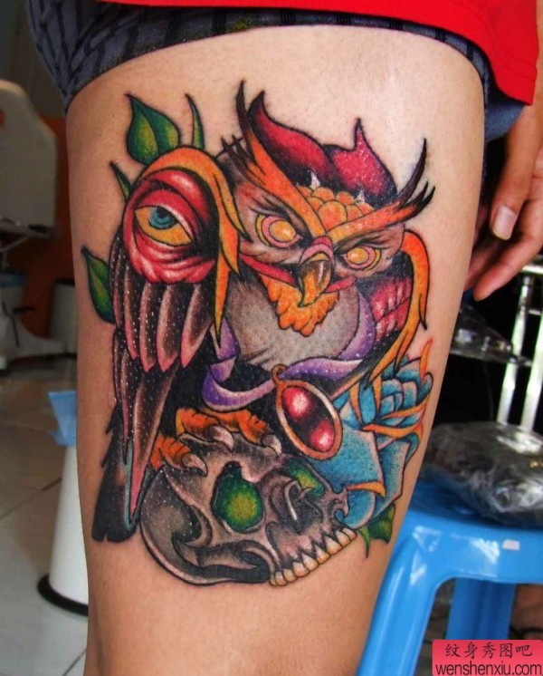 传统花腿纹身--18张传统风格的大花腿纹身图案作品