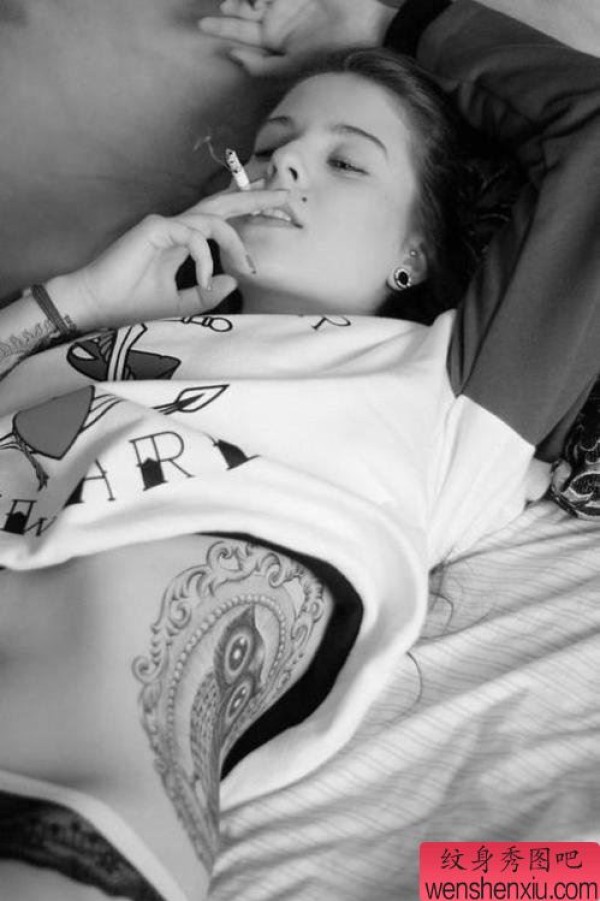 分享一款腰部时尚性感的蝶恋花纹身图案_腰部纹身图案大全_纹身图吧