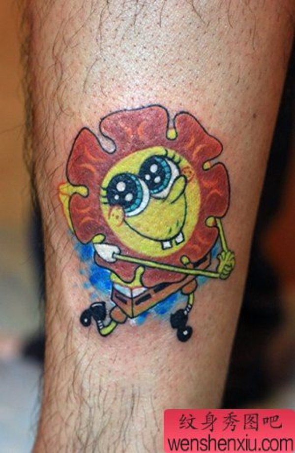 腿部一张创意卡通文身作品