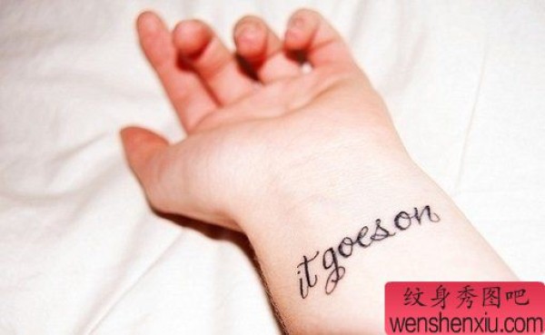 手腕上简单的英文字母纹身图