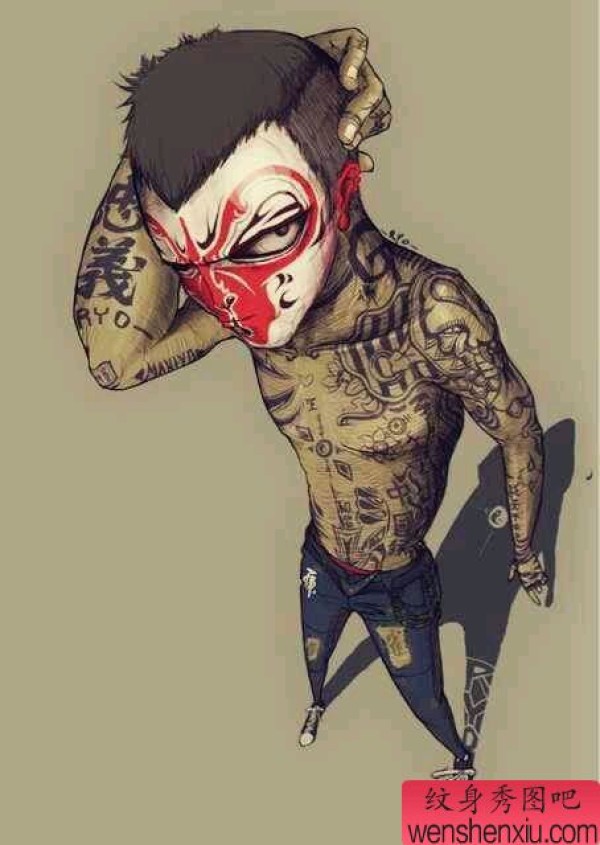 能面万媚纹身手稿_52张日式能剧面具纹身手稿图案素材欣赏
