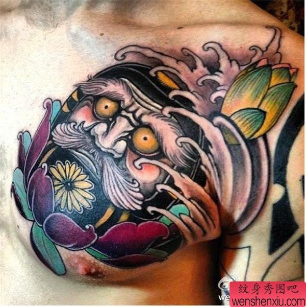 胸部达摩不倒翁文身作品