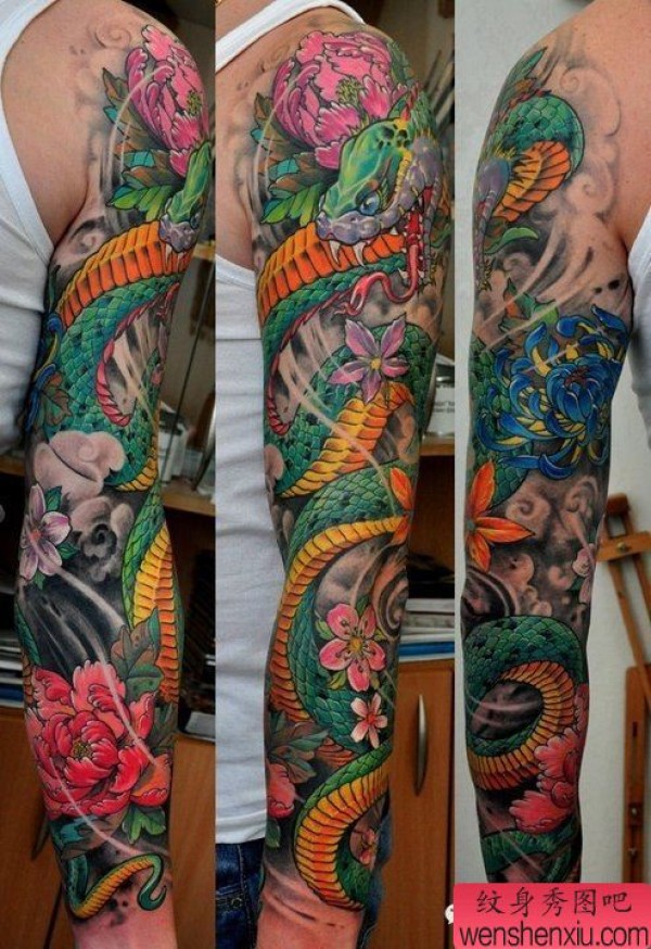 手臂莲花蛇纹身图案_臂部纹身图案大全_纹身图吧