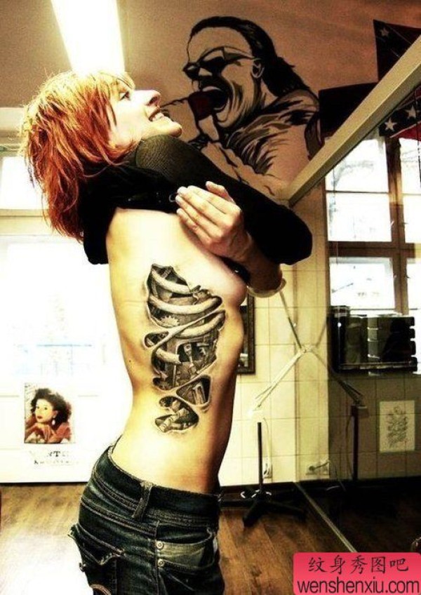 侧腰霸气老虎头纹身_腰部纹身图案大全_纹身图吧