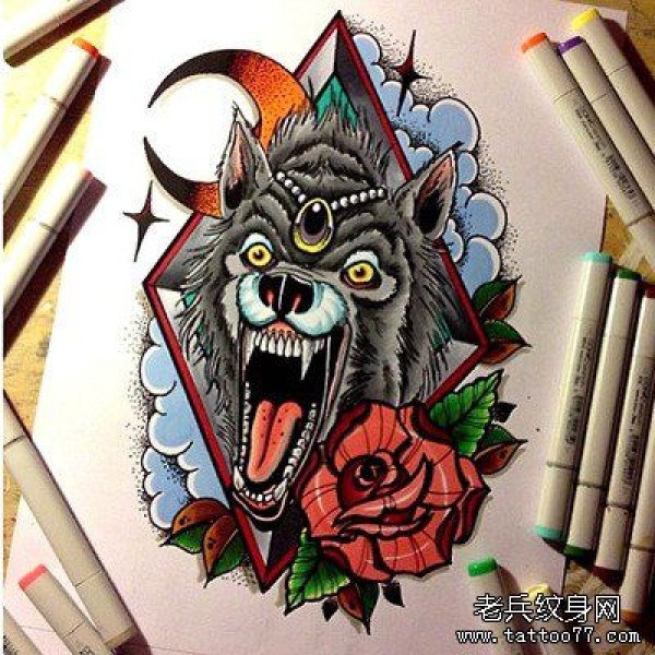 一组18张漂亮的欧美newschool动物纹身手稿图案
