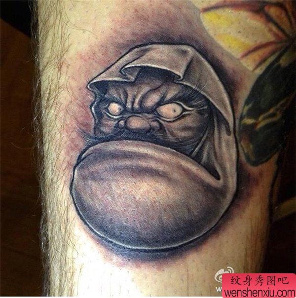 腿部达摩不倒翁文身作品