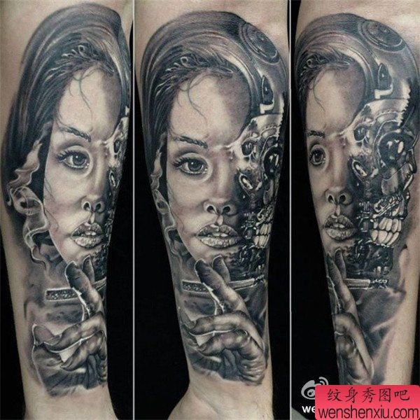纹身图吧分享一张胳膊机械女郎文身作品