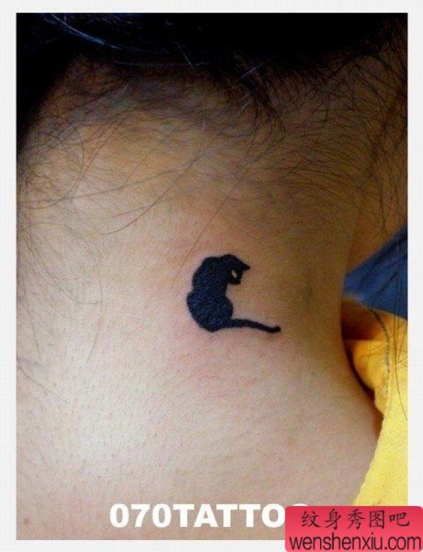 小清新颈部猫文身作品