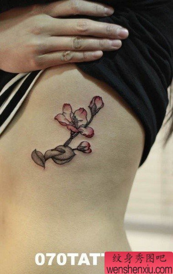 女生玲珑腰部的依兰花图案纹身女生腰部嫣红底_腰部纹身图案大全_纹身图吧
