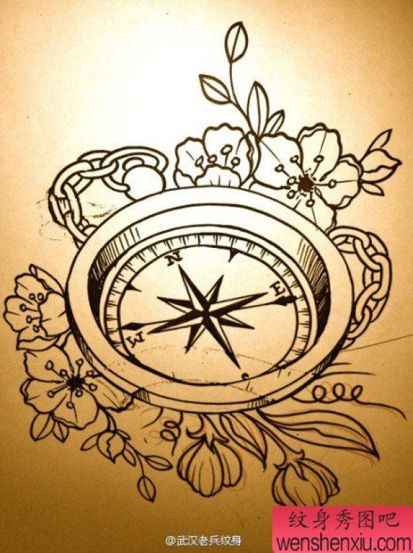 纹身图吧分享一张文身手稿作品罗盘