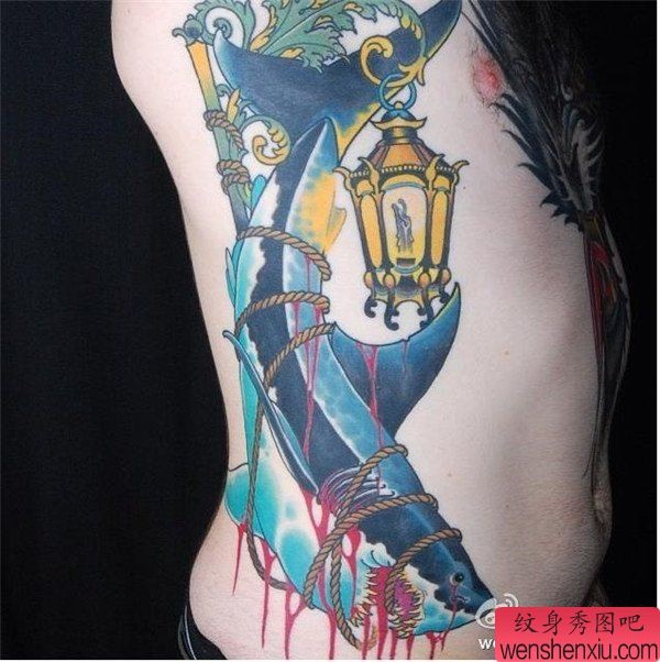 一张创意的侧腰鲨鱼文身作品