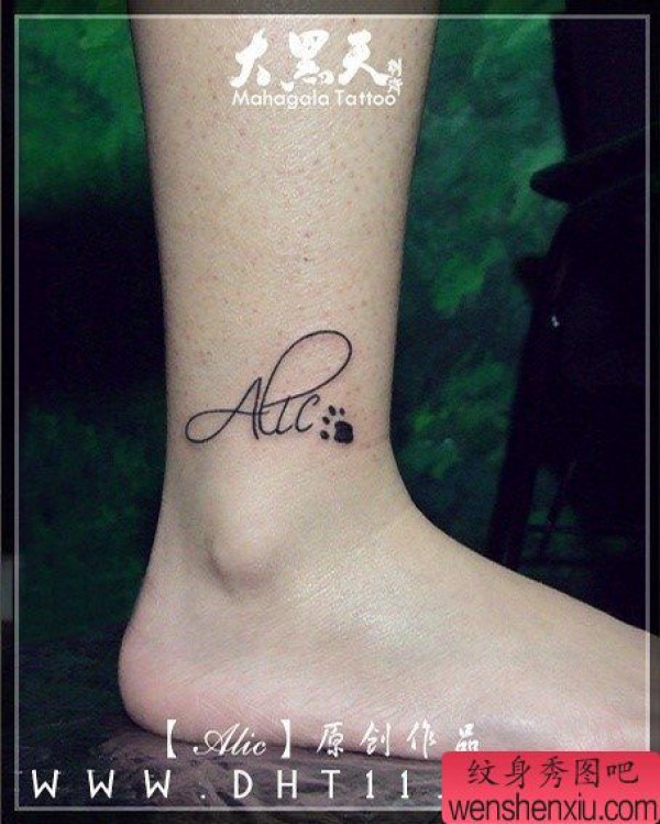 小清新脚部脚印字母文身作品