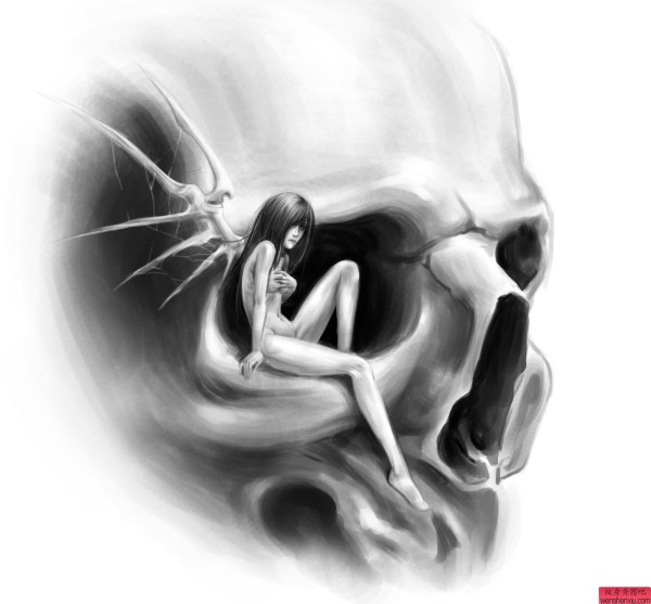 一张创意骷髅文身作品