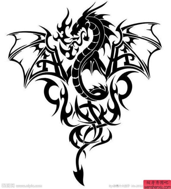 龙纹身手稿_一组老传统黑灰龙手稿纹身图案