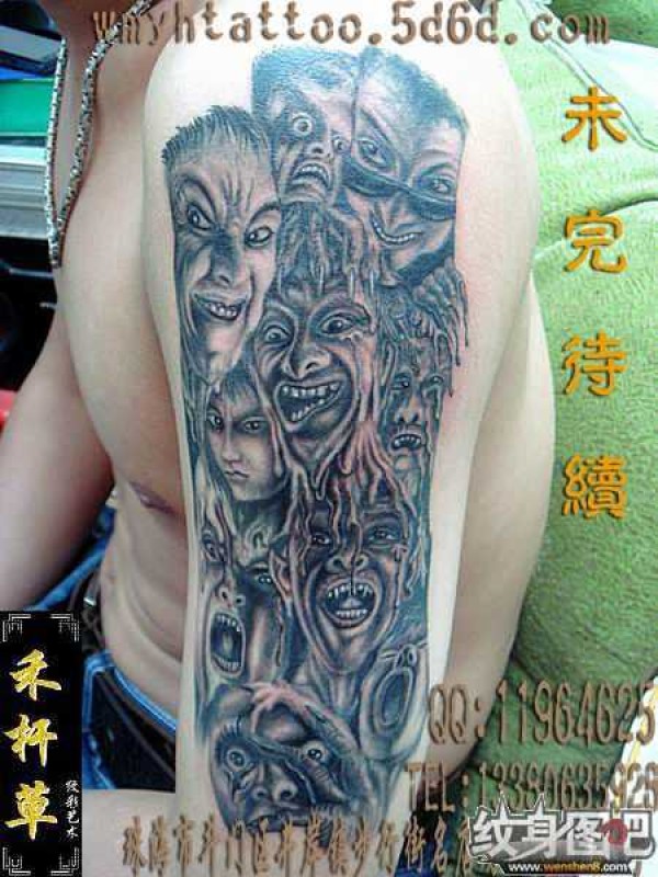 能面万媚纹身手稿_52张日式能剧面具纹身手稿图案素材欣赏