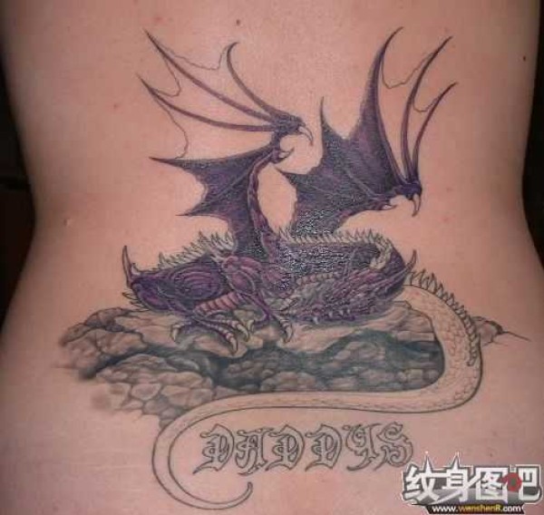 腰部一只欧美风格紫色的龙