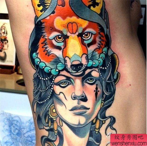 纹身图吧分享一张手臂彩色欧美女郎文身作品