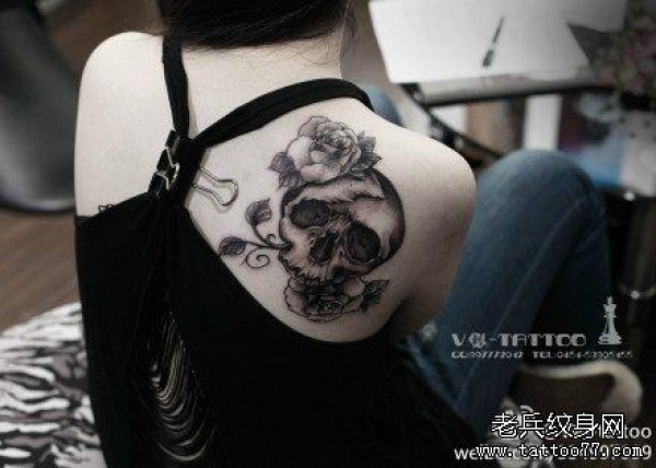 女生肩花纹身_15张女性双肩对称的肩花纹身图案作品图片