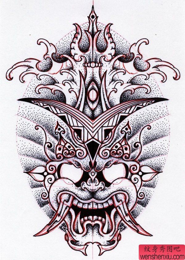 能面万媚纹身手稿_52张日式能剧面具纹身手稿图案素材欣赏