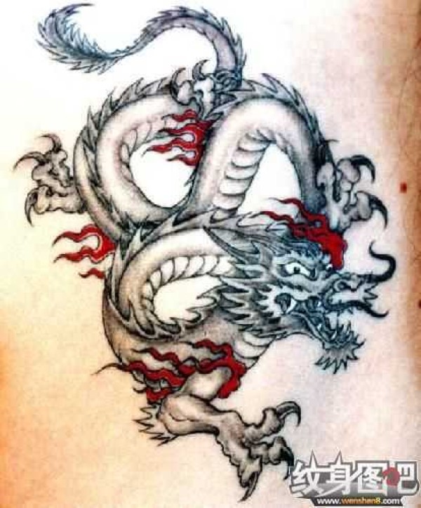 龙纹身手稿_一组老传统黑灰龙手稿纹身图案