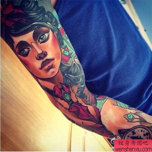 school花臂纹身--一组漂亮的school风格的花臂纹身图案作品