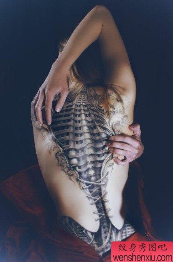 女性背部3D文身作品