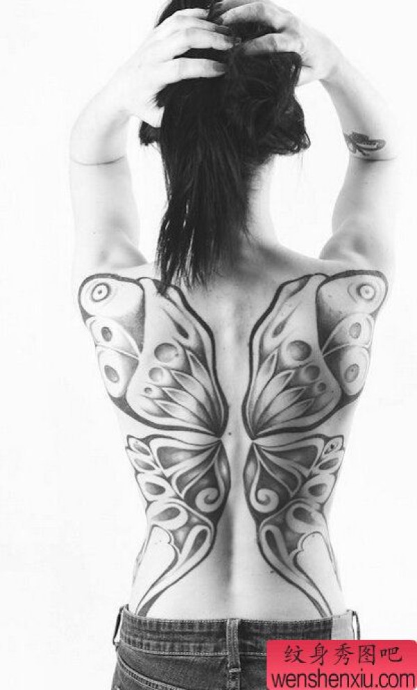 女性满背蝴蝶文身作品