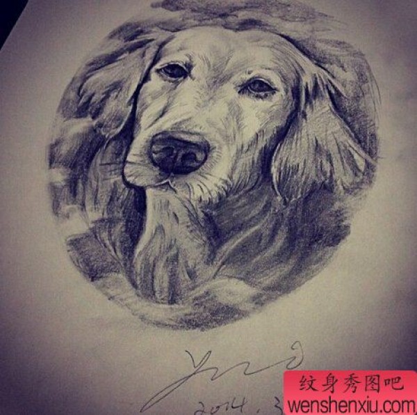 纹身图吧分享一张黑白汪星人文身手稿作品