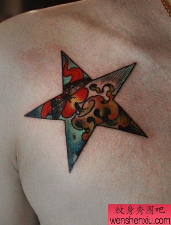 纹身图案胸部男 简洁大方的男生胸部纹身图案