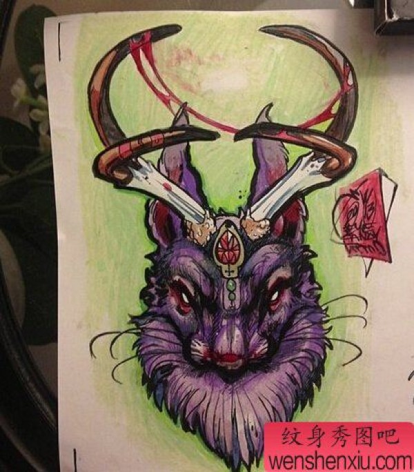 纹身图吧分享一张彩色创意羚羊文身作品