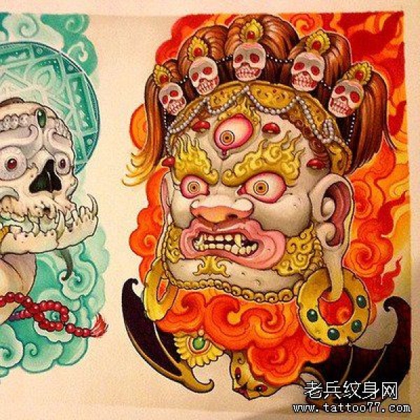 能面万媚纹身手稿_52张日式能剧面具纹身手稿图案素材欣赏