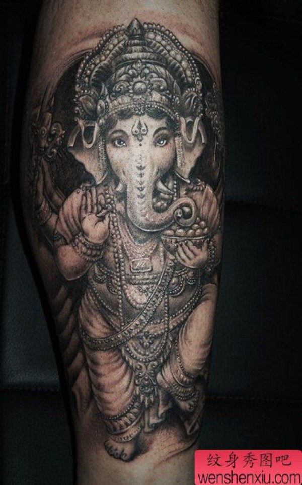 小腿上一款大象纹身图案_腿部纹身图案大全_纹身图吧