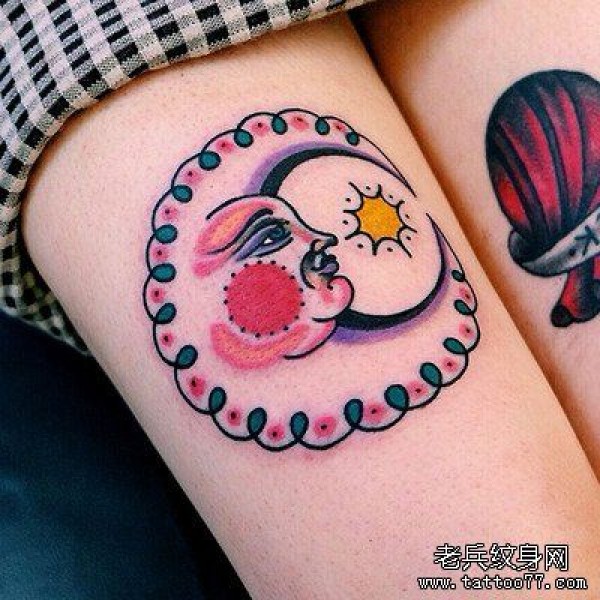 女性腿部月亮文身作品