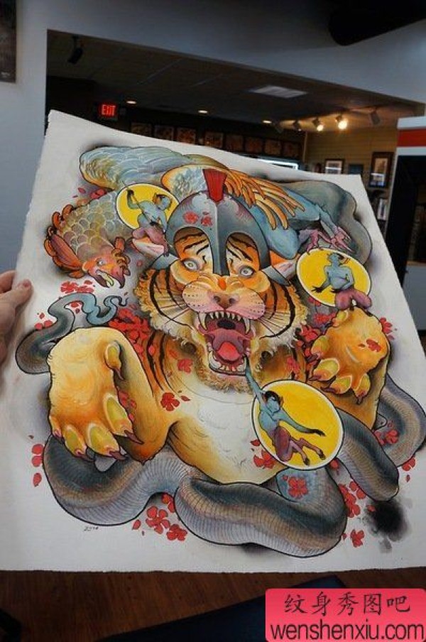 纹身图吧分享一张老虎文身手稿作品