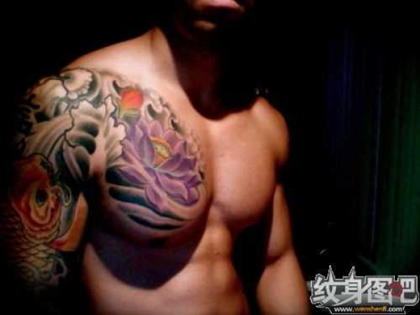 半甲鲤鱼莲花纹身图案