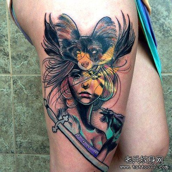纹身图吧分享一张腿部创意女郎文身作品
