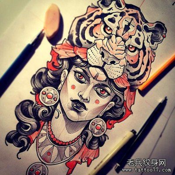 能面万媚纹身手稿_52张日式能剧面具纹身手稿图案素材欣赏