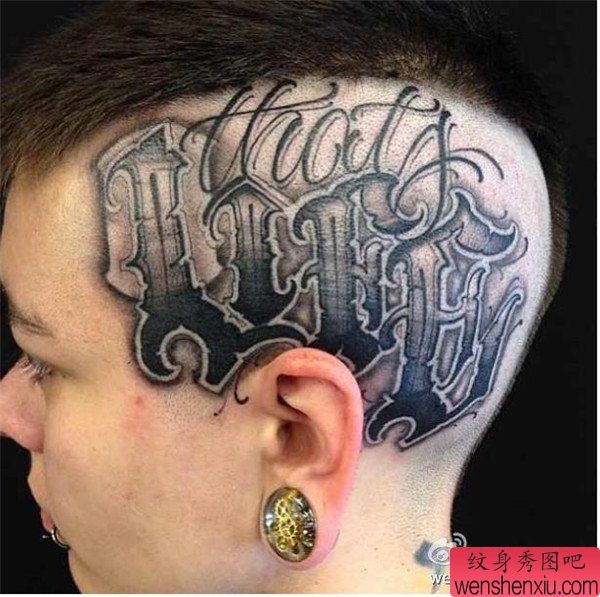 霸气男头部时尚纹身图片_头部纹身图案大全_纹身图吧