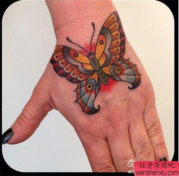 手部彩色蝴蝶文身作品