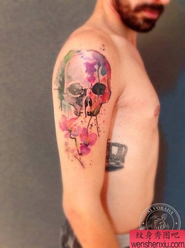 个性手臂悲伤的骷髅纹身图案图案图片_骷髅纹身图案大全_纹身图吧
