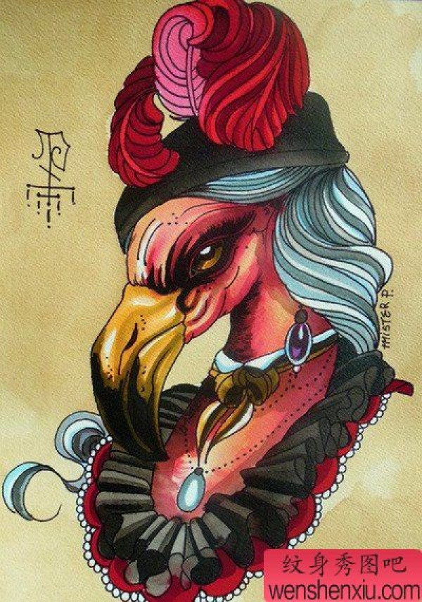 经典的一组oldschool风格的纹身彩图作品