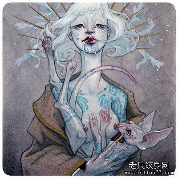 能面万媚纹身手稿_52张日式能剧面具纹身手稿图案素材欣赏