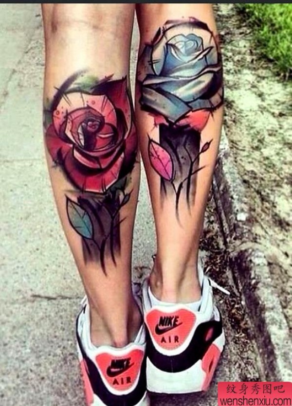 女孩腿部唯美刺青_腿部纹身图案大全_纹身图吧