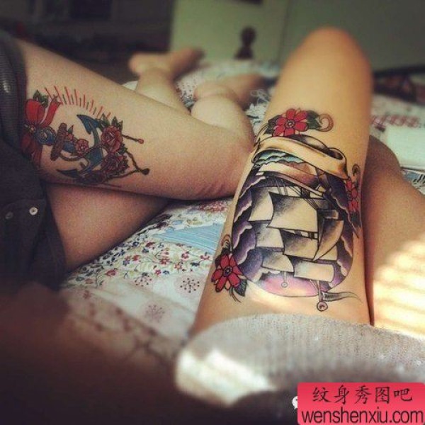 女孩腿部唯美刺青_腿部纹身图案大全_纹身图吧