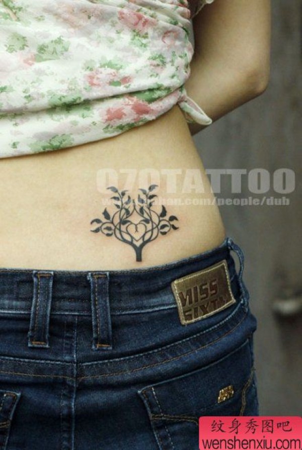 分享一款腰部时尚性感的蝶恋花纹身图案_腰部纹身图案大全_纹身图吧