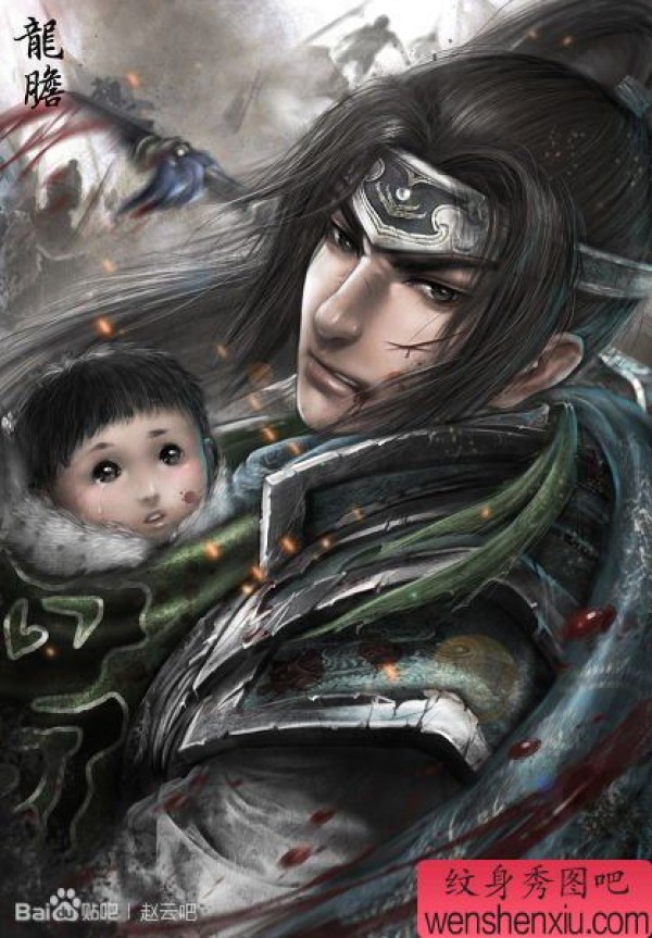 纹身图吧分享一张赵子龙抱阿斗文身手稿作品