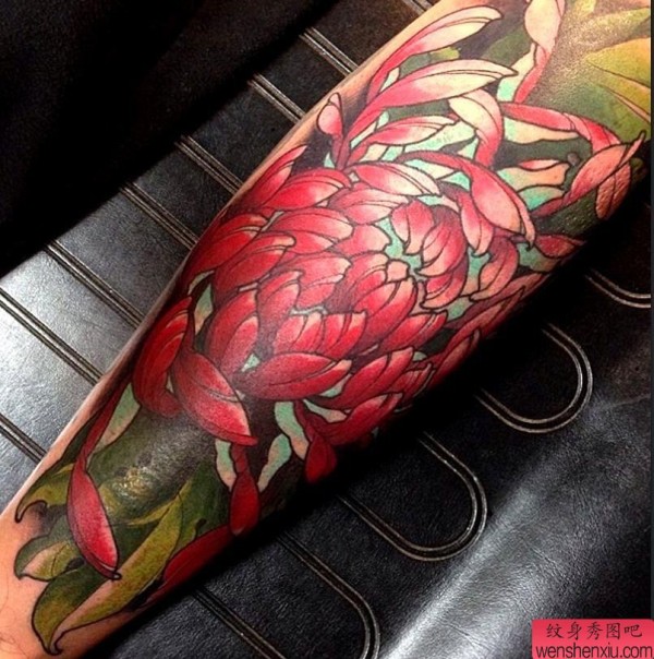 传统鲤鱼花小腿纹身_腿部纹身图案大全_纹身图吧
